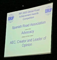 D. Luis Laorden, Vicepresidente de la AEC, recogió el Premio en nombre del Presidente, D. Miguel Mª Muñoz Medina, de manos de Peter Boyd, máximo responsables de los Global Road Achievement Award de la IRF.